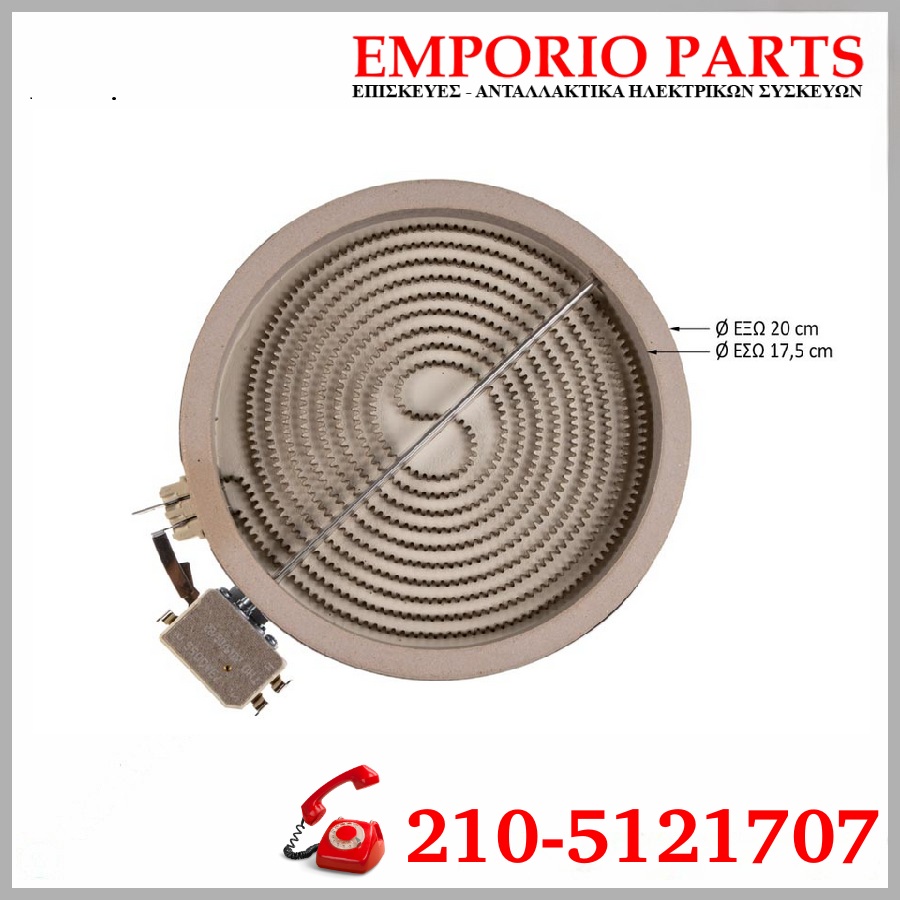 Εστία Κεραμική Φ200mm 1700Watt, 17105057W, εστία γενικής χρήσης, (Μονή), Αλλαγή εστίας