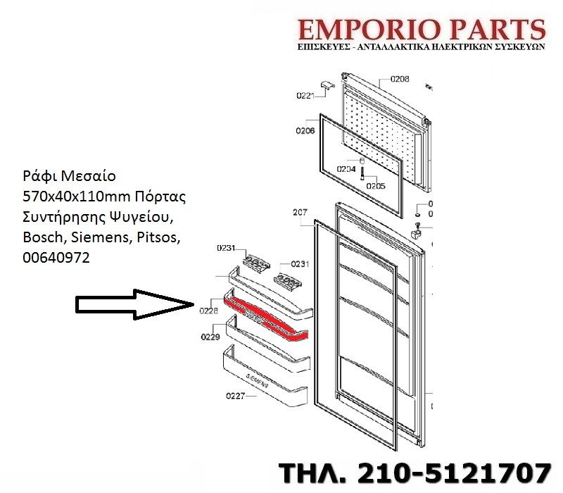Ράφι Μεσαίο 570x40x110mm Πόρτας Συντήρησης Ψυγείου, Bosch, Siemens, Pitsos, 00640972