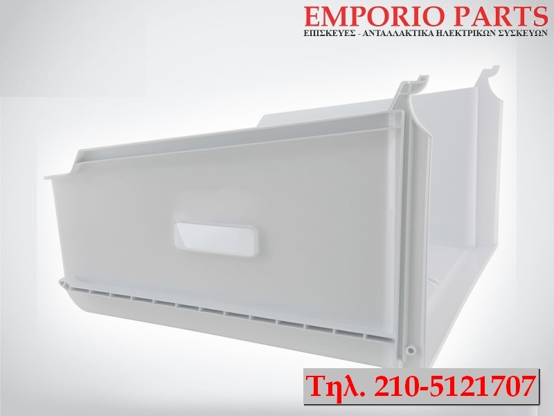 Λευκή πλαστική λεκάνη - συρτάρι θαλάμου κατάψυξης. Η λεκάνη τοποθετείται στην δεύτερη θέση του θαλάμου κατάψυξης και παραδίδεται χωρίς την διάφανη πρόσοψη.