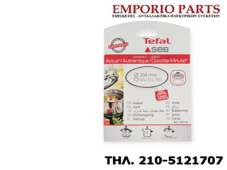 Λάστιχο χύτρας ταχύτητος SEB / TEFAL classic 10, 12 & 18 λίτρων, SS-790138, 790138, 4133383, 3045387901387, 49.55.45.12, 49554512, 49555110