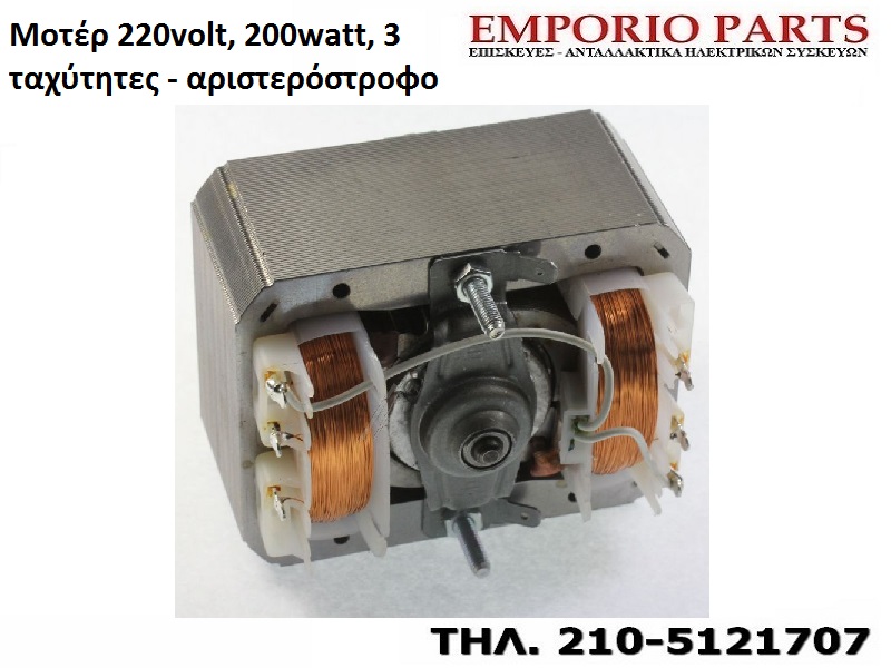 Μοτέρ 220volt, 200watt, 3 ταχύτητες - αριστερόστροφο απορροφητήρα