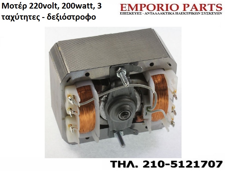 Μοτέρ 220volt, 200watt, 3 ταχύτητες - δεξιόστροφο απορροφητήρα, 446LG03
