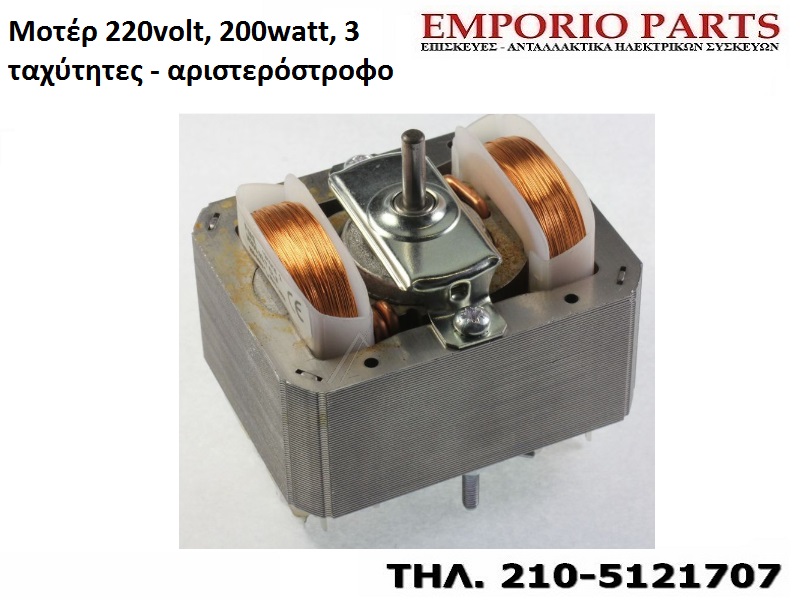 Μοτέρ 220volt, 200watt, 3 ταχύτητες - αριστερόστροφο απορροφητήρα
