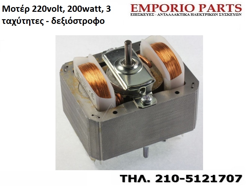 Μοτέρ 220volt, 200watt, 3 ταχύτητες - δεξιόστροφο απορροφητήρα, 446LG03